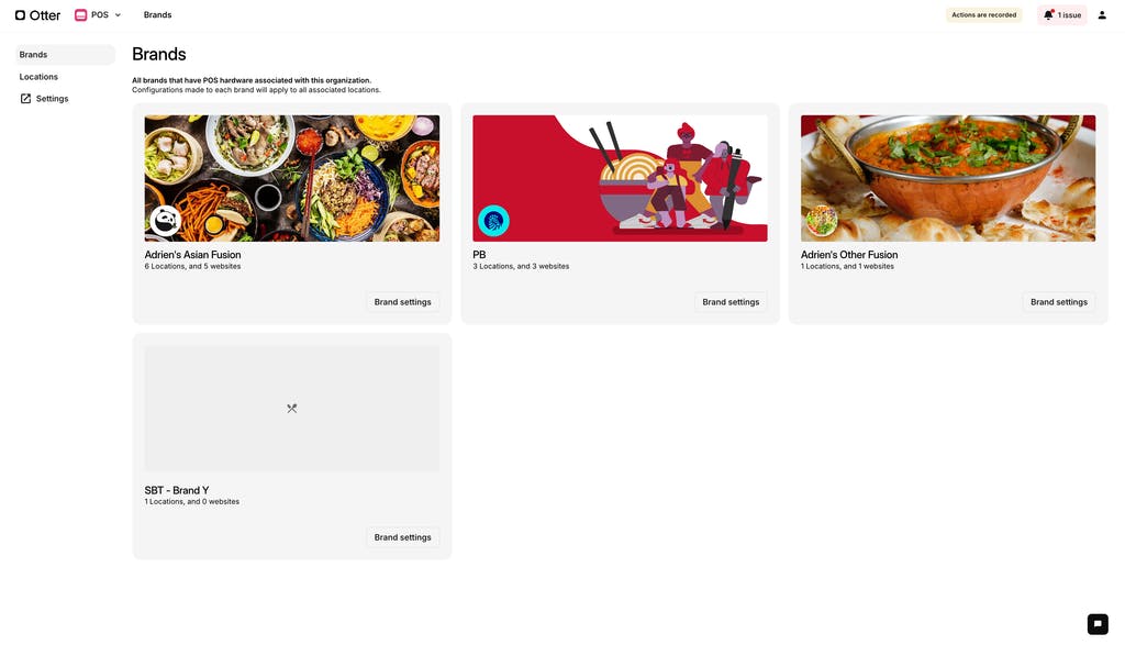 Have greater control over your POS. Each of your brands and locations now has its own settings. Your organization-wide settings can be customized per brand and each brand can be configured per location. Manage device options such as logout times, tipping, and branding.
