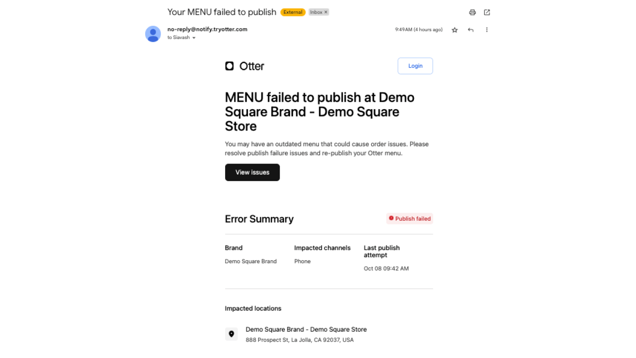 Square POS customers will now see their item availability updates in real time across delivery apps. Make sure your menu sync setting is turned on in Otter’s Menus app.
