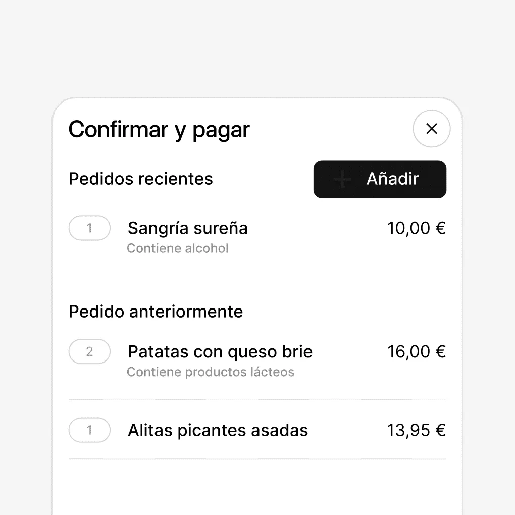 Los clientes pueden ver los platos del menú, pedir y pagar directamente a través de su móvil.