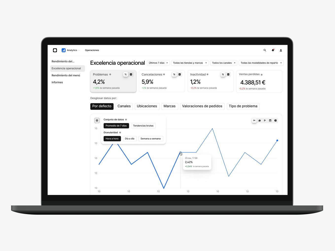 Identifica fácilmente oportunidades para mejorar cada área de tu negocio, desde el desempeño, hasta las operaciones, los menús y mucho más.