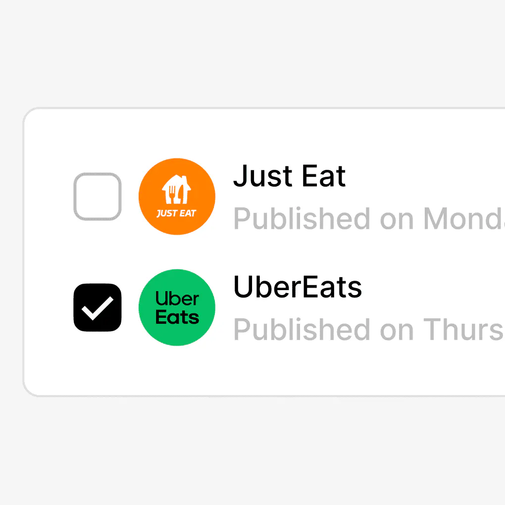 Haz los cambios una vez y envíalos a todos tus servicios de delivery con un solo clic. Ahorra tiempo y mantén todos tus menús sincronizados.
