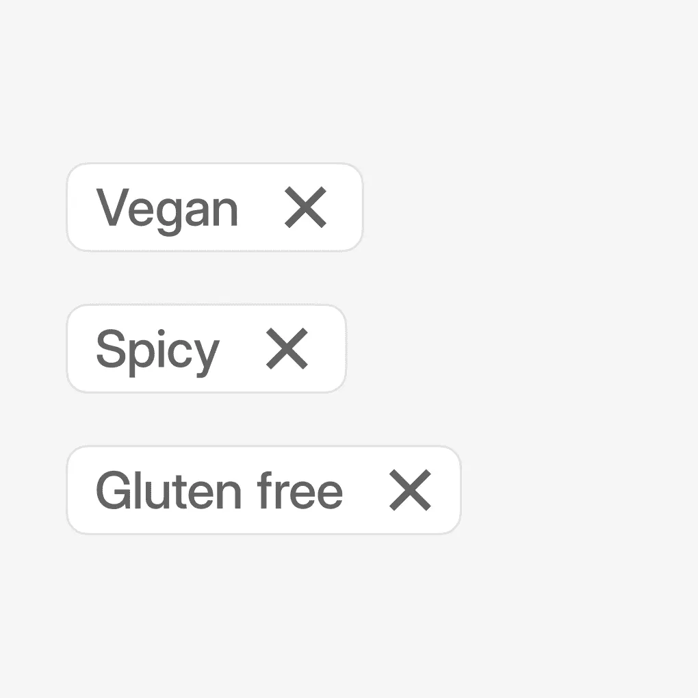 Vegano, picante, sin gluten... etiquetar los elementos del menú te ayuda a vender comida más rápido cuando los clientes saben lo que van a comer sin tener que preguntar.
