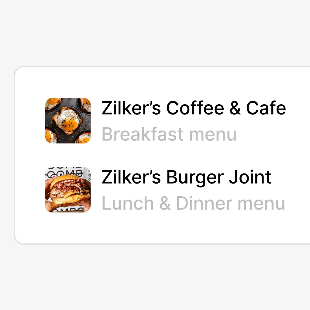 Cambiar los menús solía ser un problema, pero ya no. Haz que tus menús evolucionen con tu negocio y actualízalos tan a menudo como lo necesites.