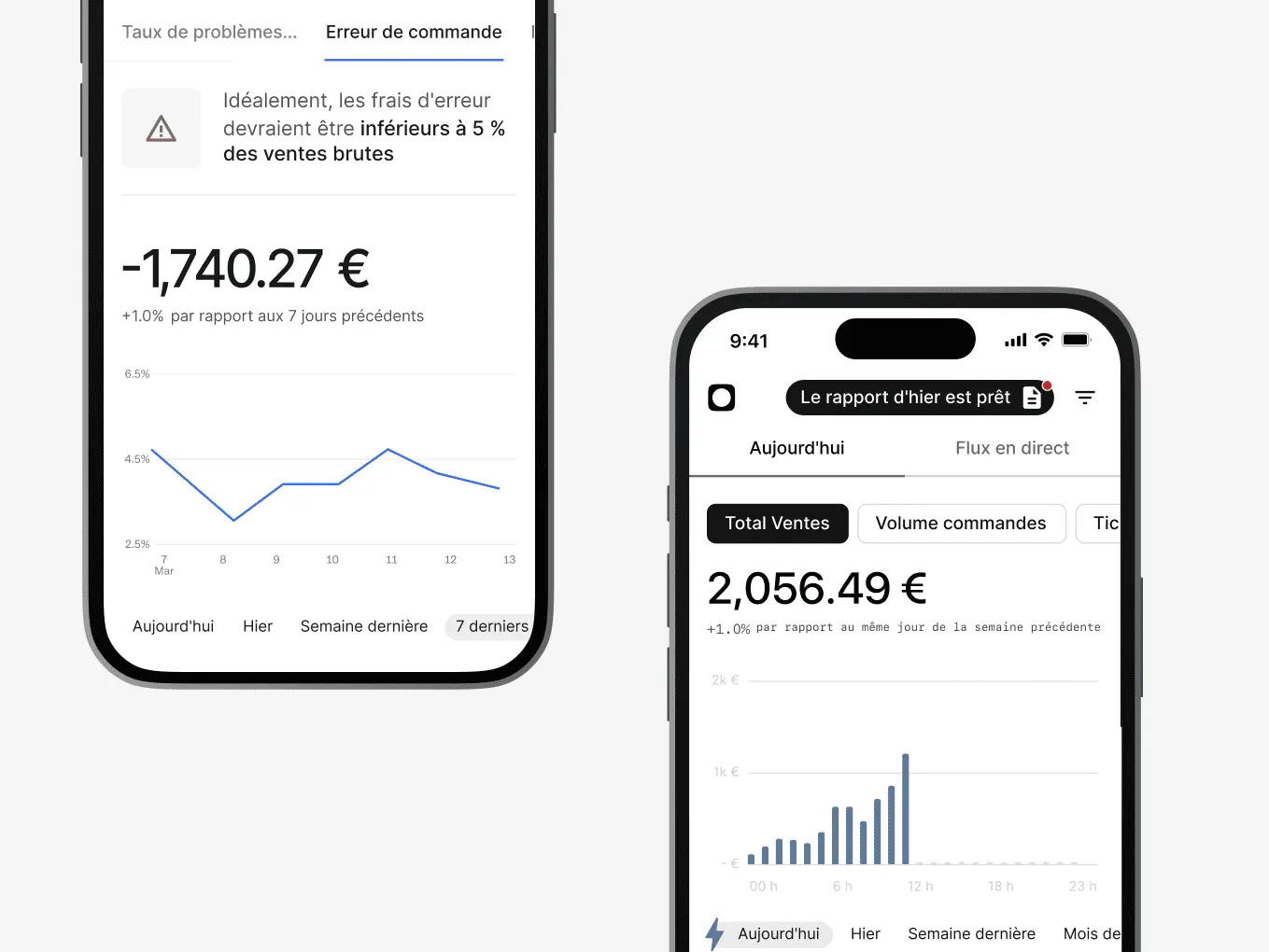 Recevez chaque jour un aperçu des ventes quotidiennes, du volume des commandes, du positionnement des établissements, des performances des canaux, etc.