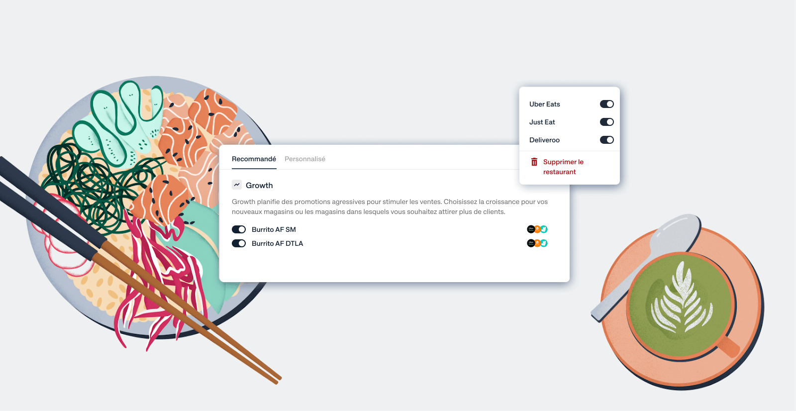 Vous souhaitez faire grandir votre entreprise ? Vous voulez profiter de chaque vente pour gagner plus d'argent ? Est-ce que vous avez l’impression de perdre du temps lorsque vous devez mettre en place une promotion sur une application de livraison ? Si vous avez répondu "oui" à l'une de ces questions, alors Promotions est la solution dont votre restaurant a besoin !