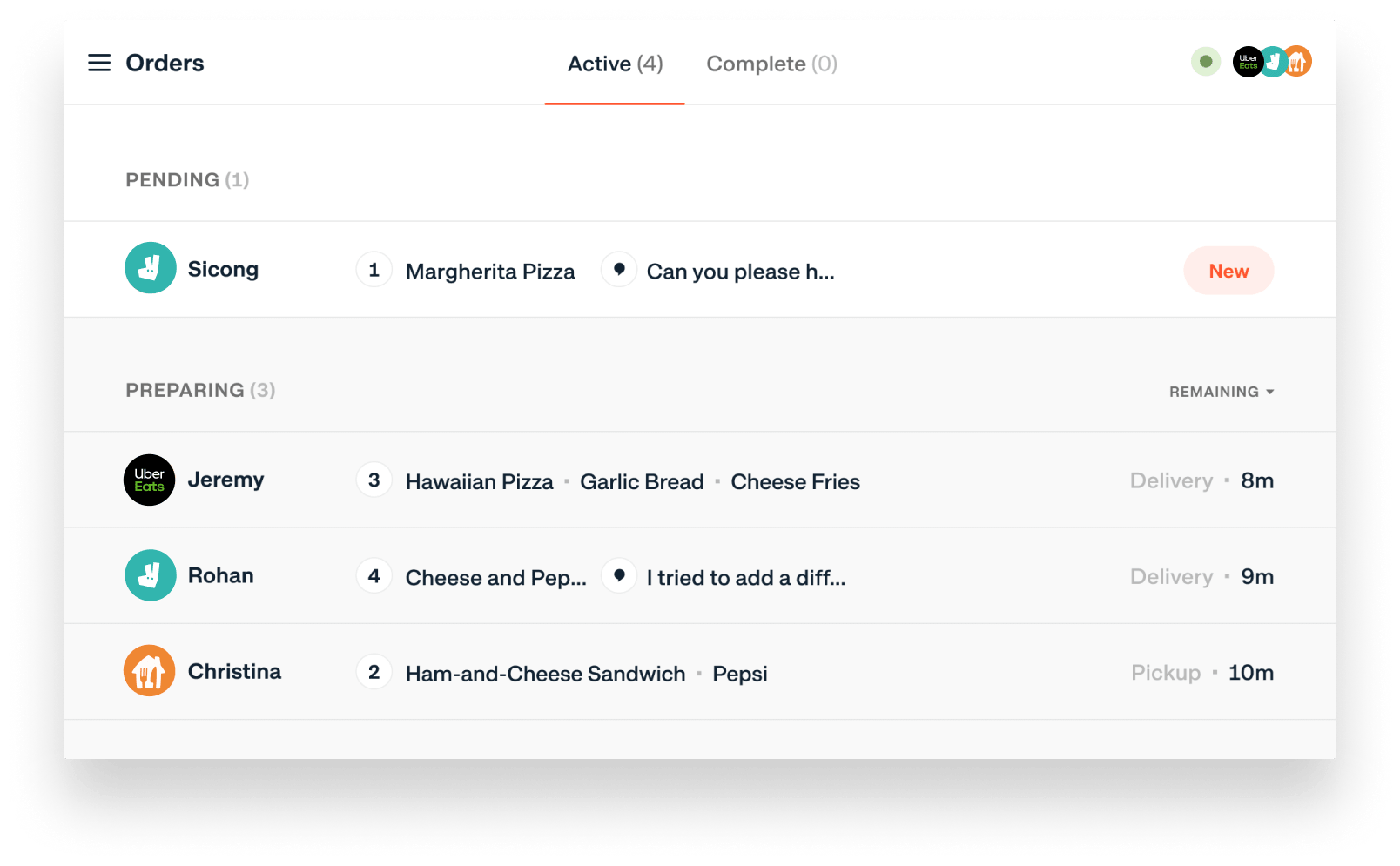 Avec un espace, une capacité et un personnel limité, la centralisation de toutes les commandes de plates-formes telles que Glovo, Uber Eats et Deliveroo sur une seule tablette est un besoin critique. Nous vous offrons également un accès à des données centralisées sur leurs performances qui leur permettent de prendre des décisions éclairées sans investir trop de temps.