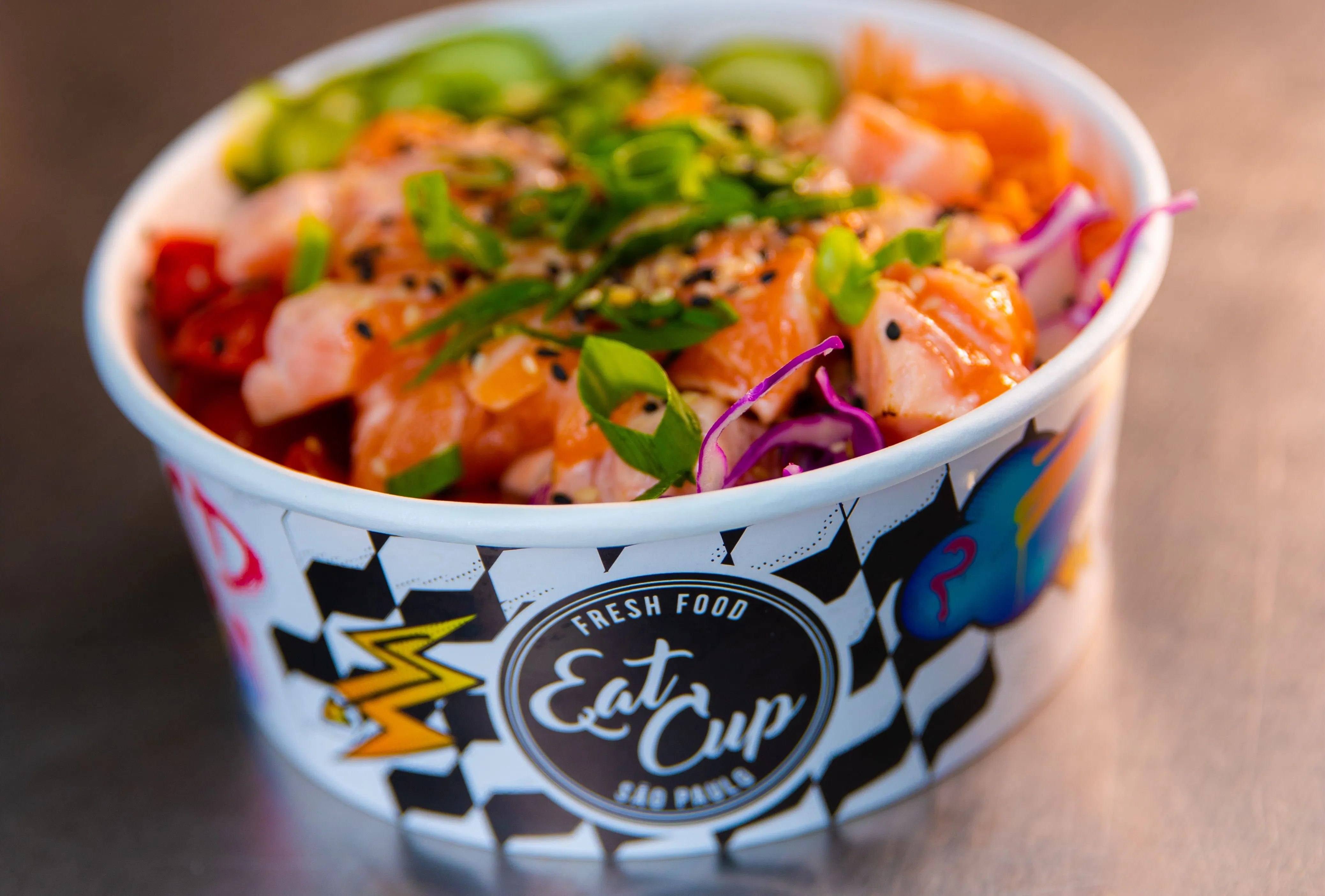 EatCup, focado em freshfood, poke e agora saladas, nasceu em 2017. No maior estilo empreendedor, Jurandir Oliveira começou o negócio com seu sócio, tendo só os dois para fazer tudo: criar os pratos, cozinhar, preparar os pedidos para serem entregues, administrar as finanças, enfim, tudo mesmo! Não levou muito tempo para o negócio crescer e, além das entregas por delivery, eles passaram a trabalhar também com retirada no local.
