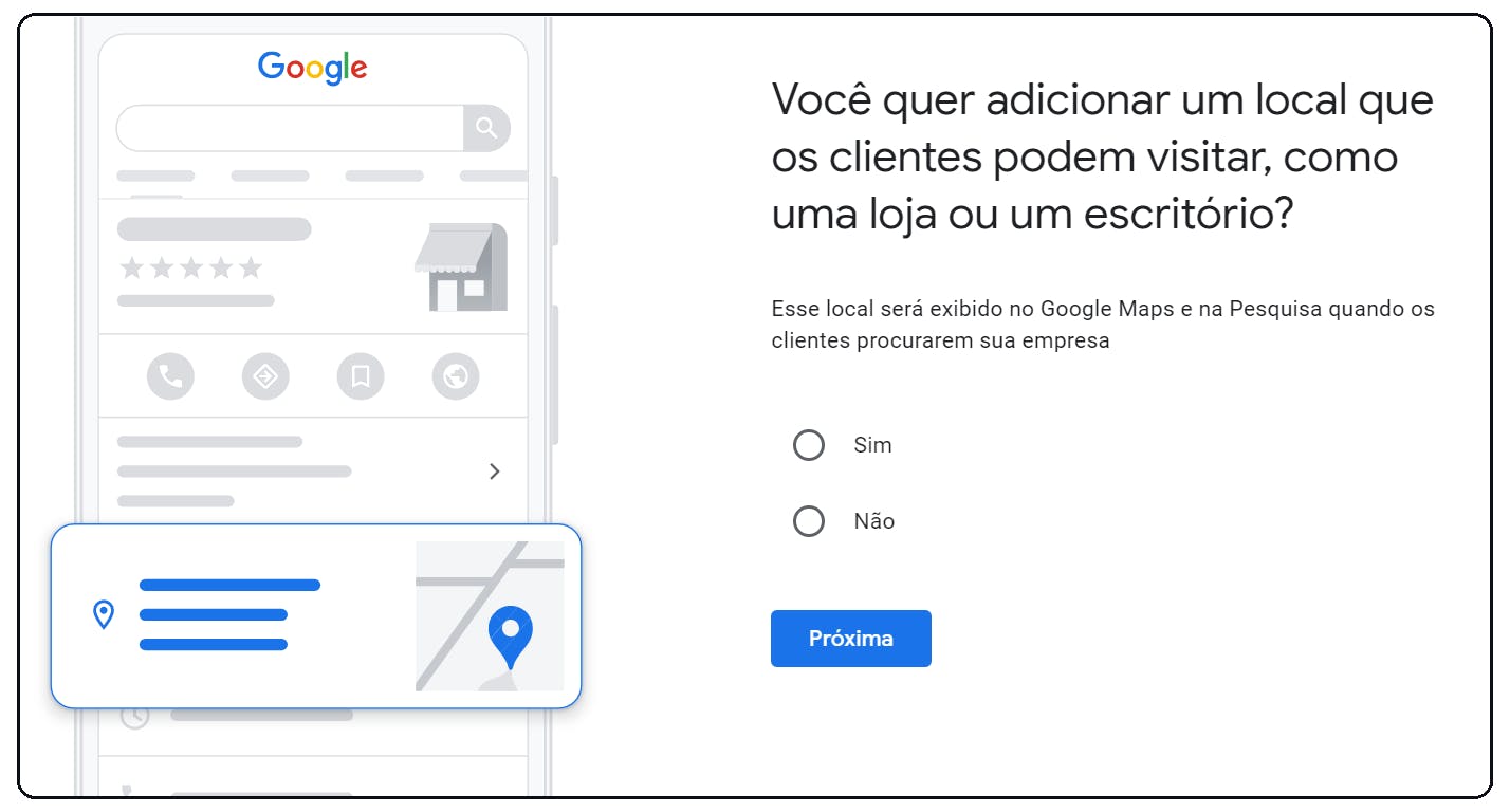 - Você poderá escolher se deseja receber novidades ou recomendações para o seu perfil Google Meu Negócio.