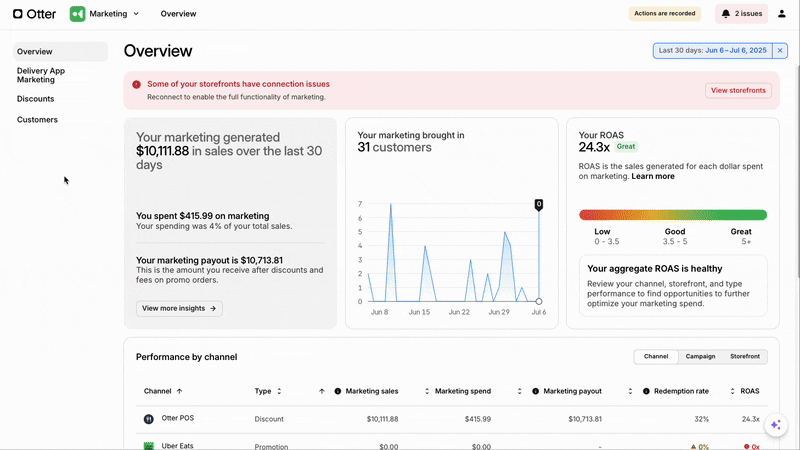 What’s new: The new Discounts tab in the Marketing app allows you to create or update both your Otter POS and Online Ordering discounts in one place. All the discount configurations for each channel are still there – customize discounts based on discount type, duration, and more.