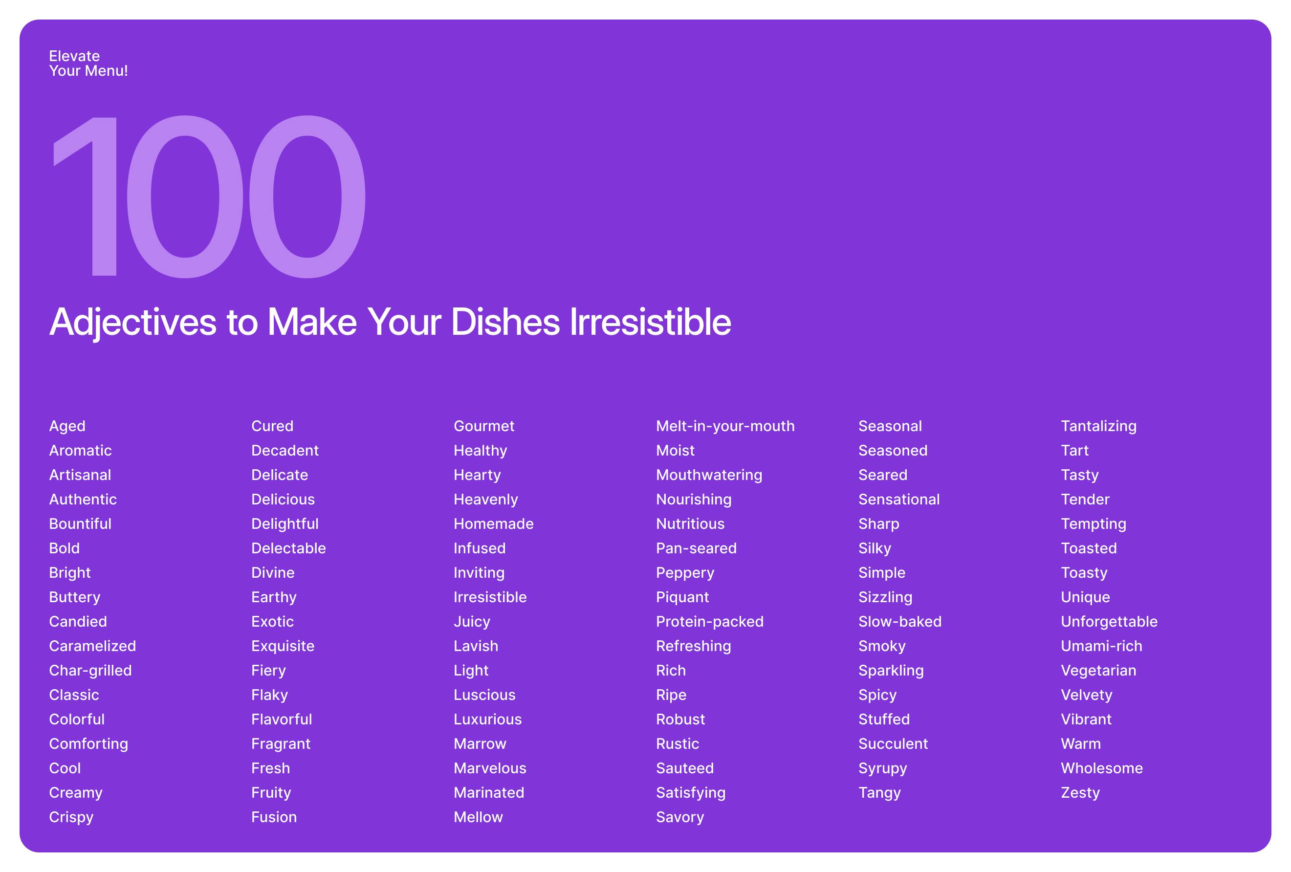 Why it works: Active verbs make the dish sound more appealing and vivid in the diner's mind.