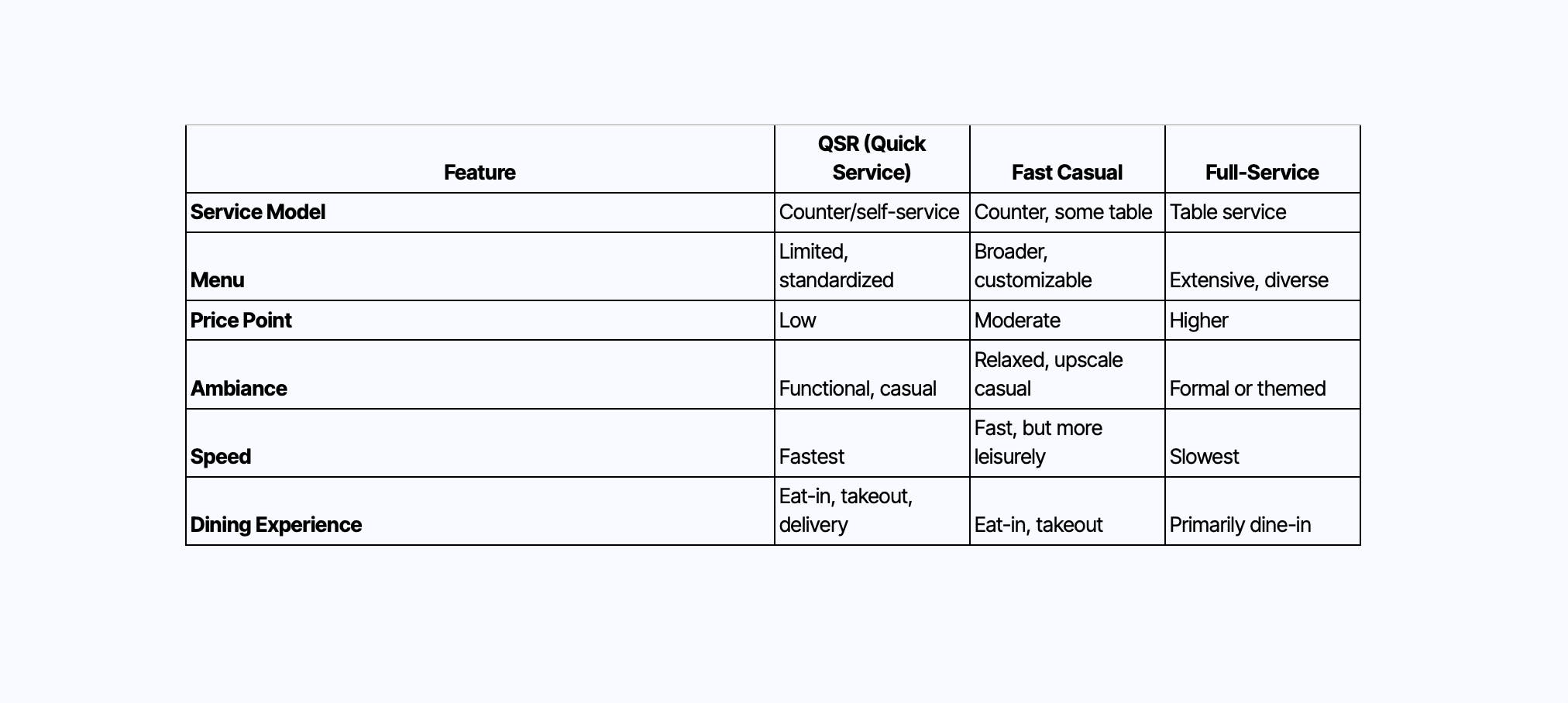 Every day, millions of customers walk into quick service restaurants expecting their order ready fast, exactly as ordered, at a price point that fits their budget. A quick service restaurant, also known as a QSR, is a dining establishment designed around speed of service, efficiency, and affordability. In these establishments, standardized menu items are optimized for takeout, delivery, or quick dine-in experiences. Unlike fast-casual restaurants, where establishments emphasize higher-quality ingredients and customization with some table service, QSRs focus on rapid counter service and consistent value, often through self-service models.