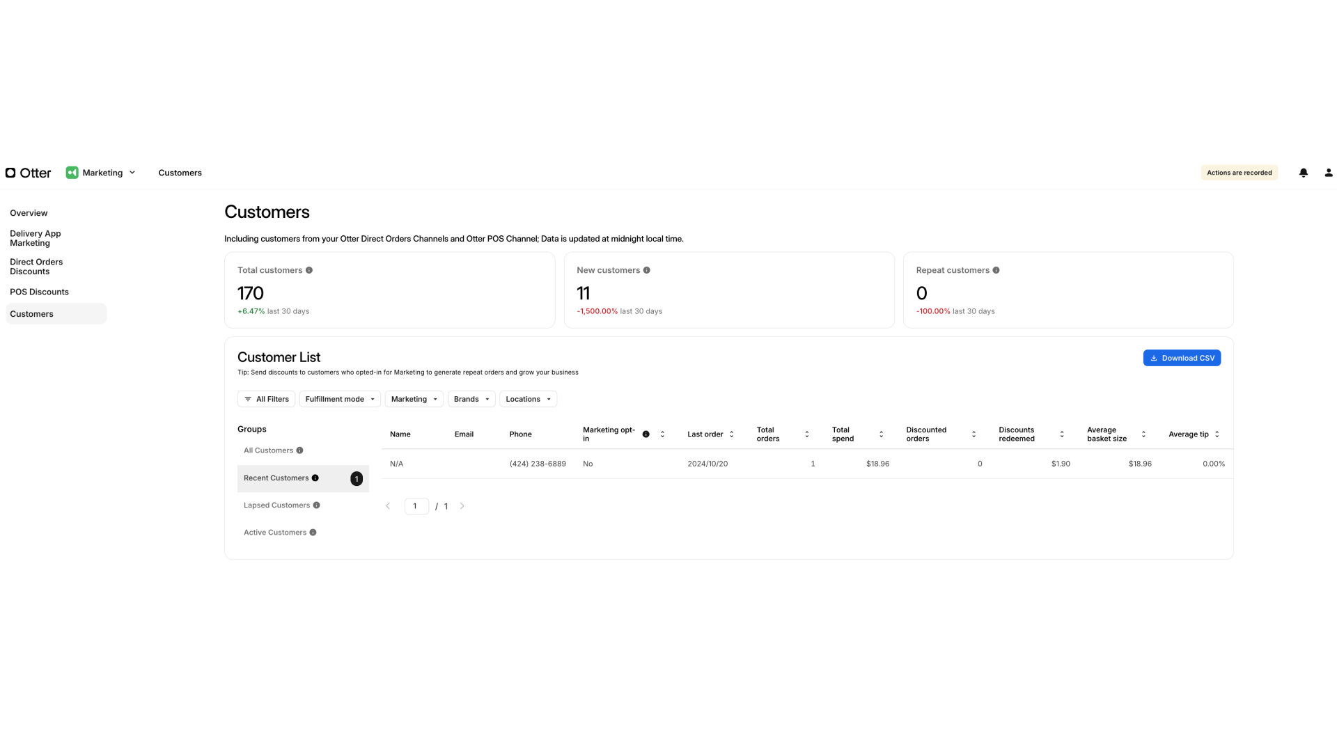 The customers report in the Marketing app now has your POS customers’ data. Filter by fulfillment mode, brand, or location to target them better.
