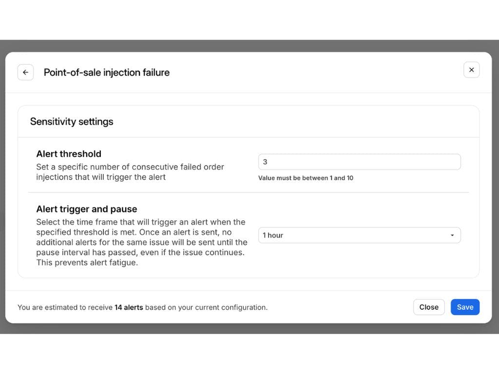 Receiving too many alerts about POS injection? Now you can cap the number of alerts you receive and how many consecutive injection failures are needed to trigger the alert.