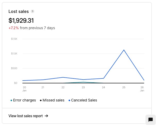In this tab, you can see your business's Gross Sales, Order Volume, Top Items by Units Sold, and Lost Sales. By clicking the View Report link at the bottom of each block, you'll be able to see a detailed breakdown of your respective sales performance.