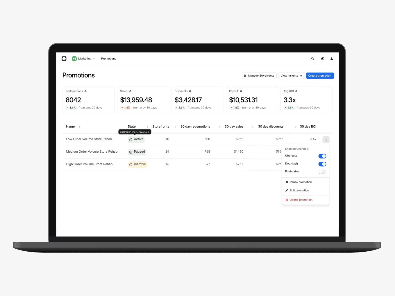 Choose your unique marketing goals to customise your promos across delivery apps.