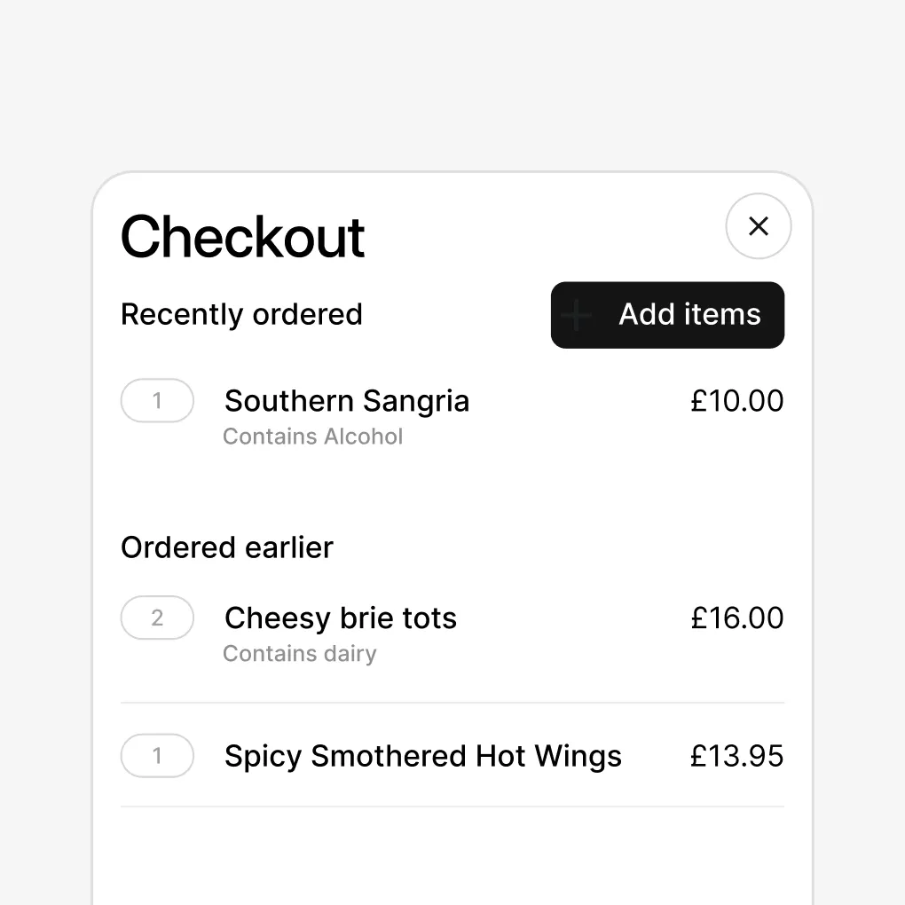 Seamless dine-in experience for your guests to scan menu items, order, and pay directly through their phones.