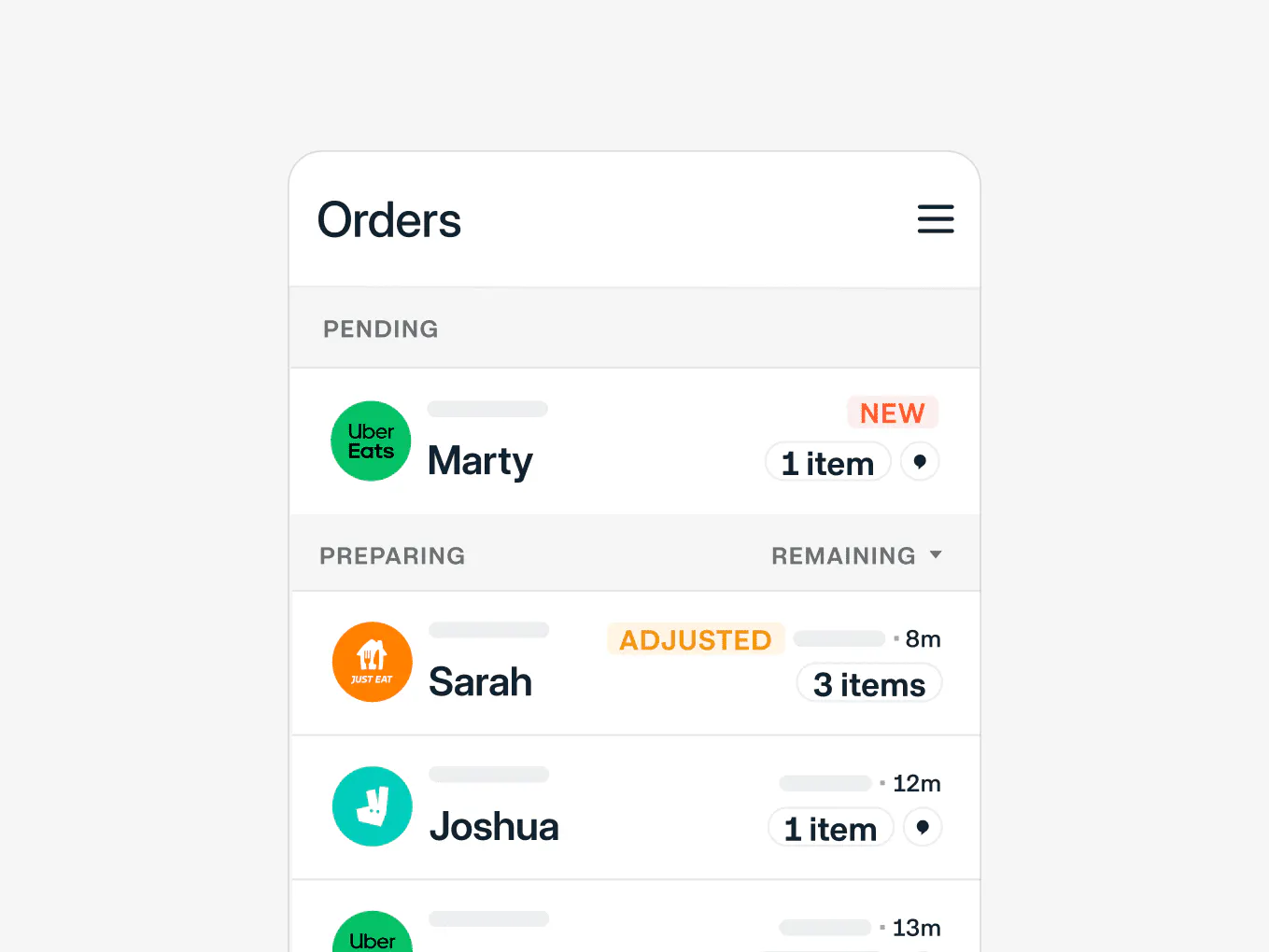 Meals are prepped in Order Manager for both your business and Virtual Brands.
