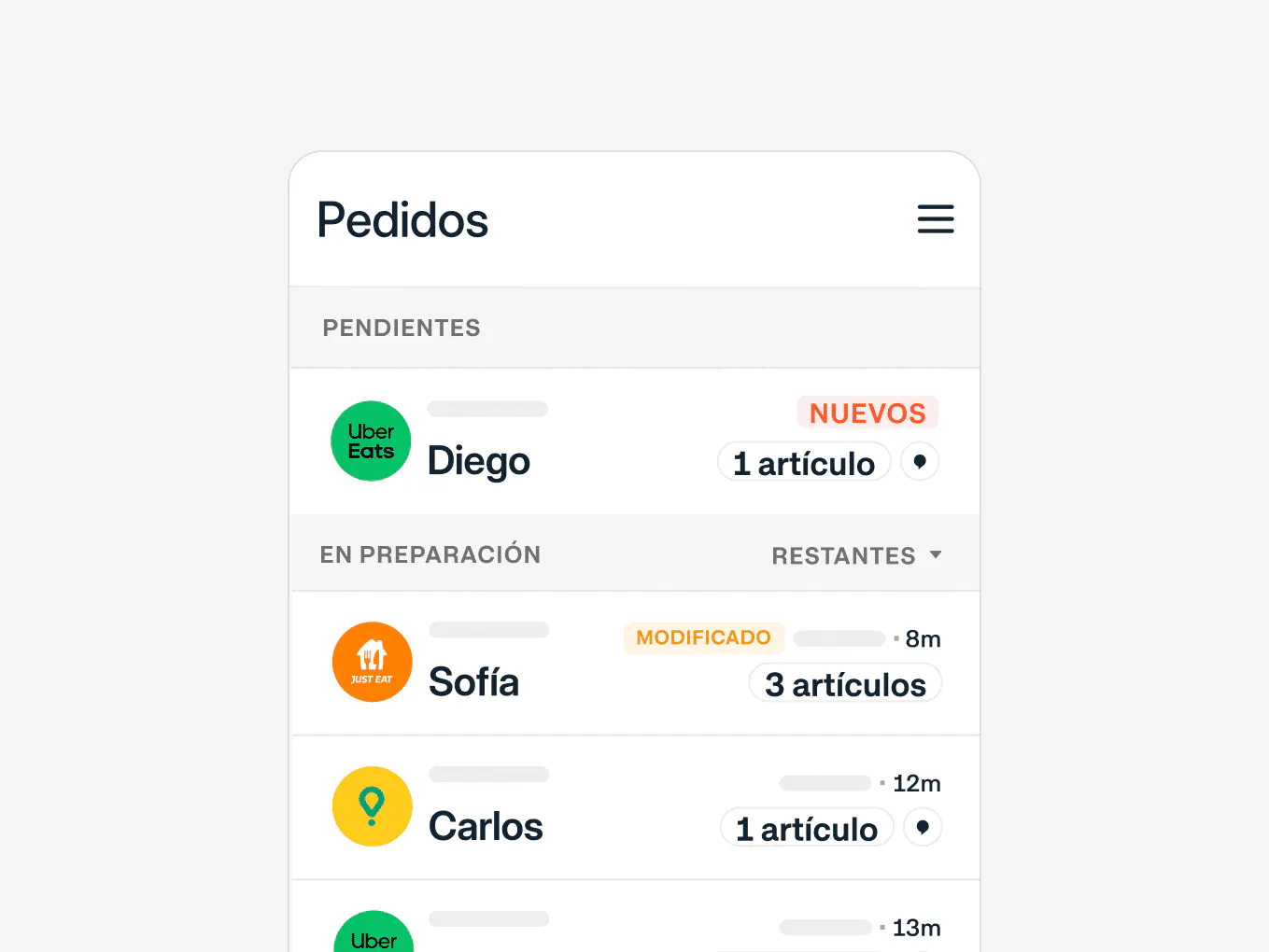 Gestiona pedidos online en todas las aplicaciones de delivery, ajusta el tiempo de preparación e introduce pedidos manuales en la cola, todo desde un solo lugar.