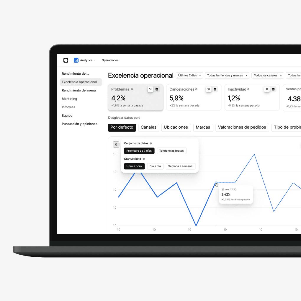 Gestiona pedidos, actualiza menús y edita la disponibilidad de artículos en todas tus tiendas y canales desde una única tableta o mediante la integración con tu sistema de TPV.