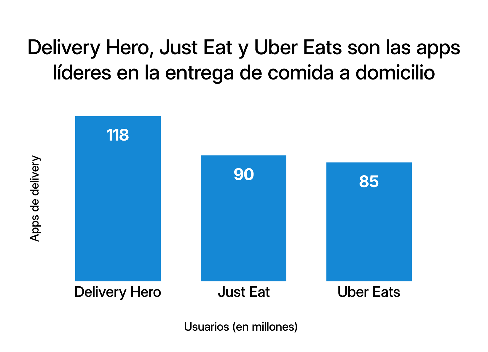 - Le siguen Just Eat (90 millones de usuarios) y Uber Eats (85 millones de usuarios).