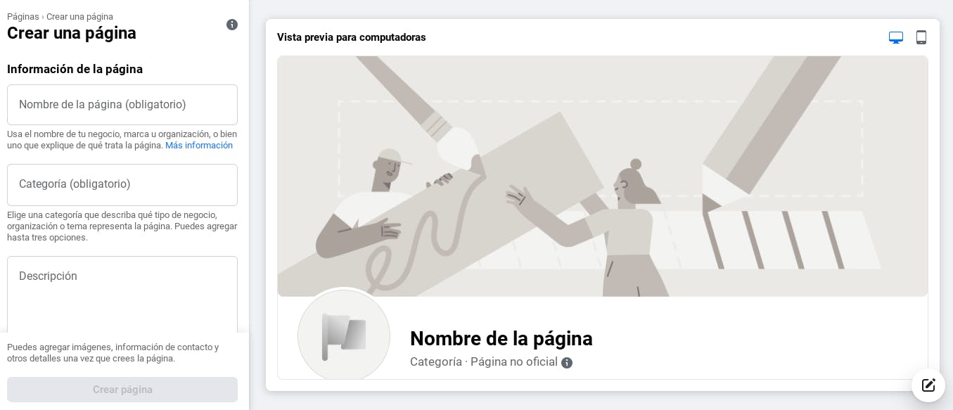 - En la parte superior de la página de inicio, haz clic en el icono “Páginas” y después haz clic en “Crear nueva página”.