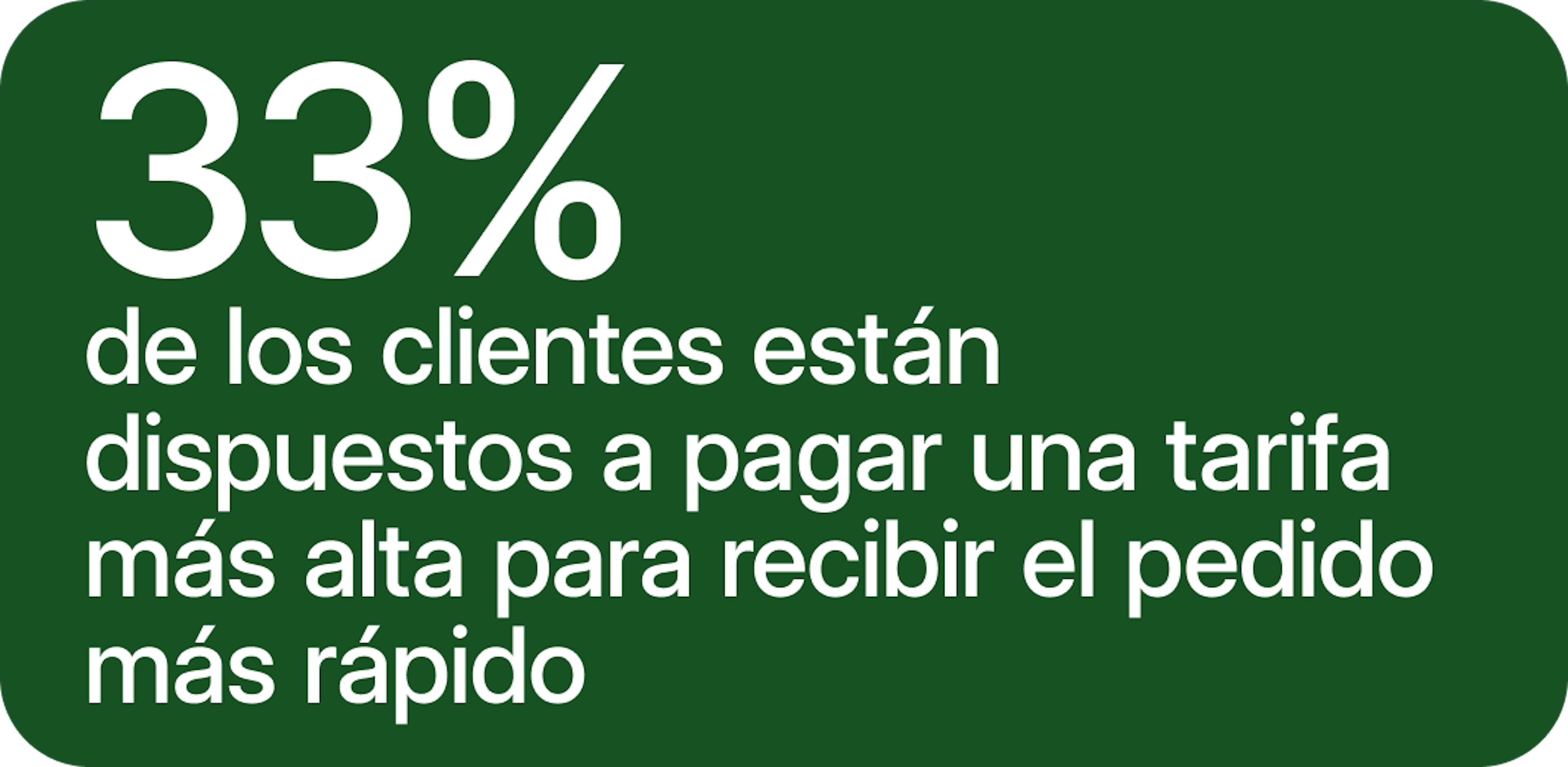- 33% de los clientes están dispuestos a pagar una tarifa más alta por la comodidad de un servicio de entrega más rápido.