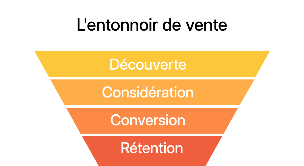 Il y a généralement quatre étapes dans un entonnoir d'e-commerce classique :