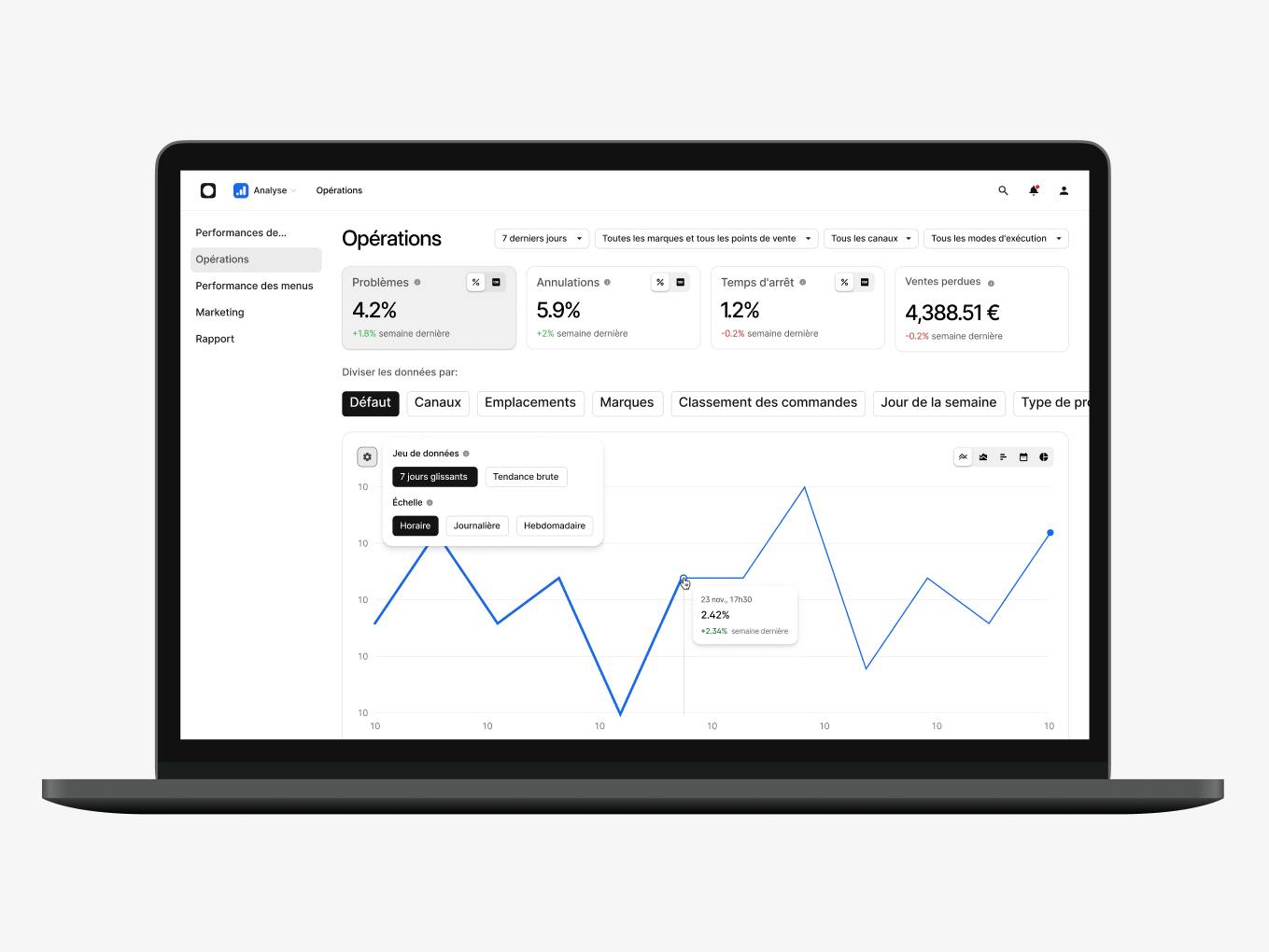 Identifiez facilement les opportunités d'amélioration dans tous les aspects de votre entreprise, que ce soit dans les opérations, le marketing, les menus, et bien plus encore.