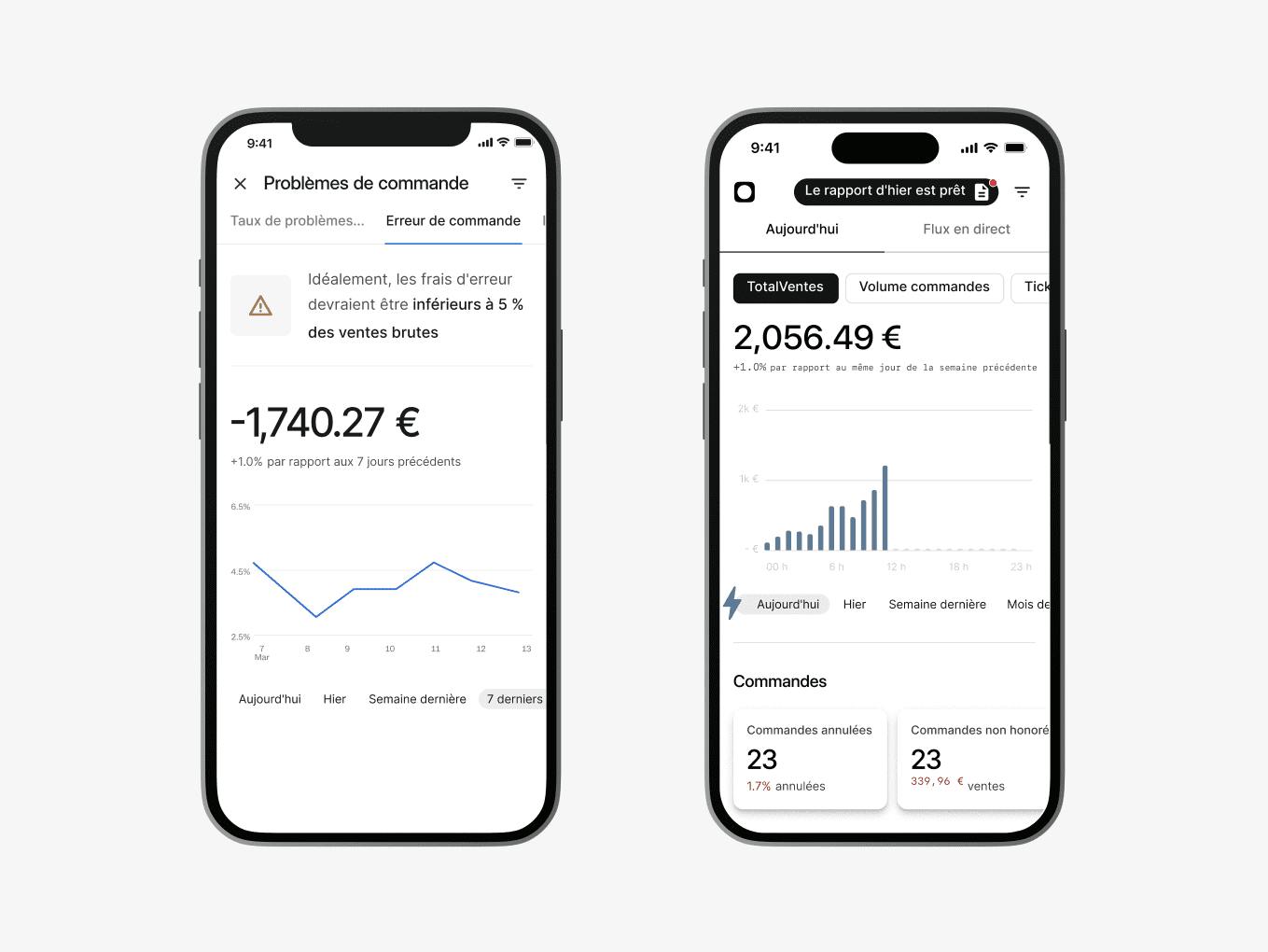 Centralisez toutes les informations provenant de diverses sources, y compris vos partenaires de livraison, vos établissements, vos marques et même votre système de caisse, dans une seule vue d'ensemble. Cela élimine la nécessité de jongler avec différentes applications.