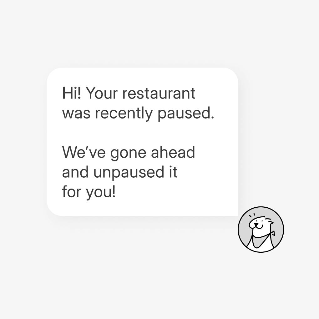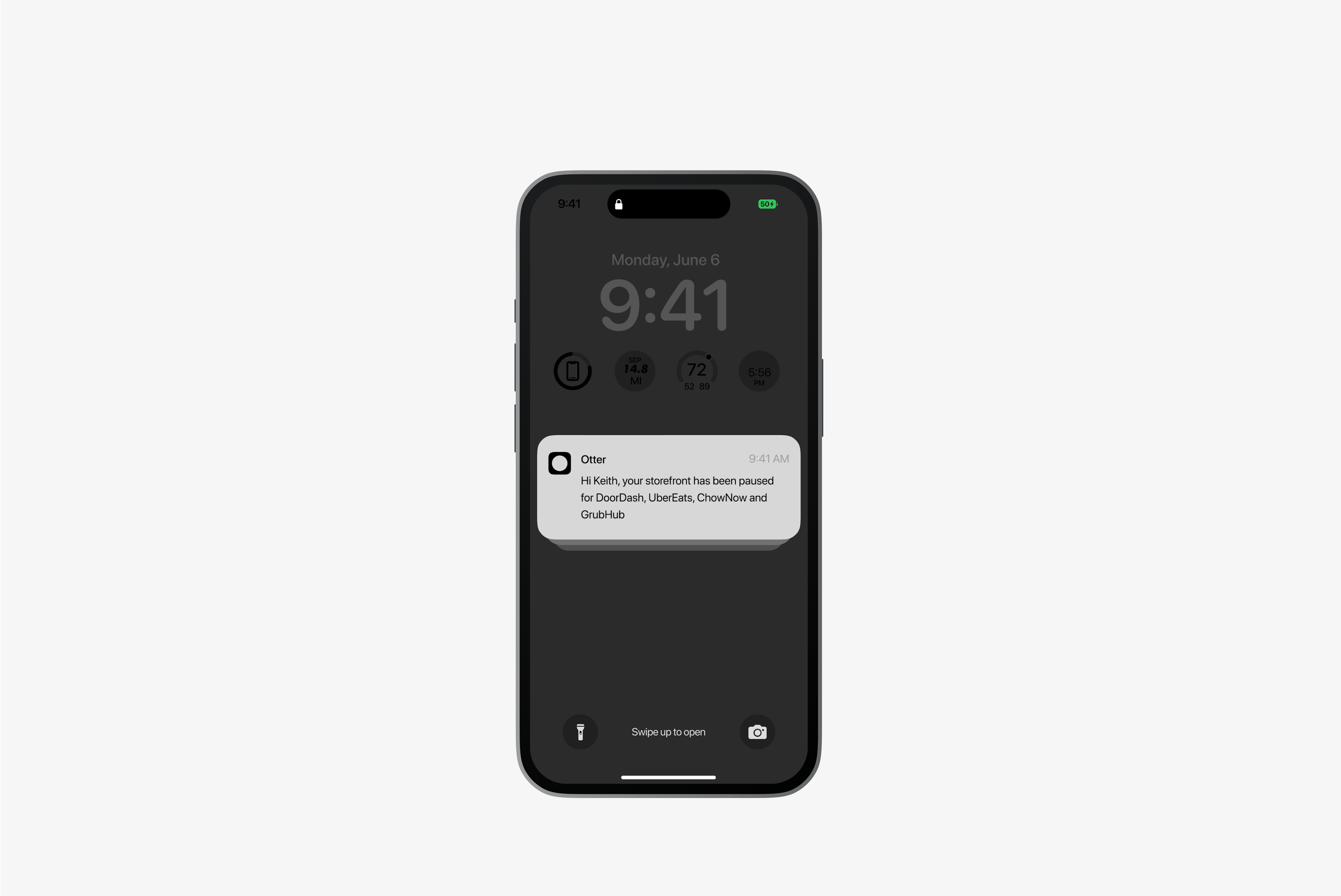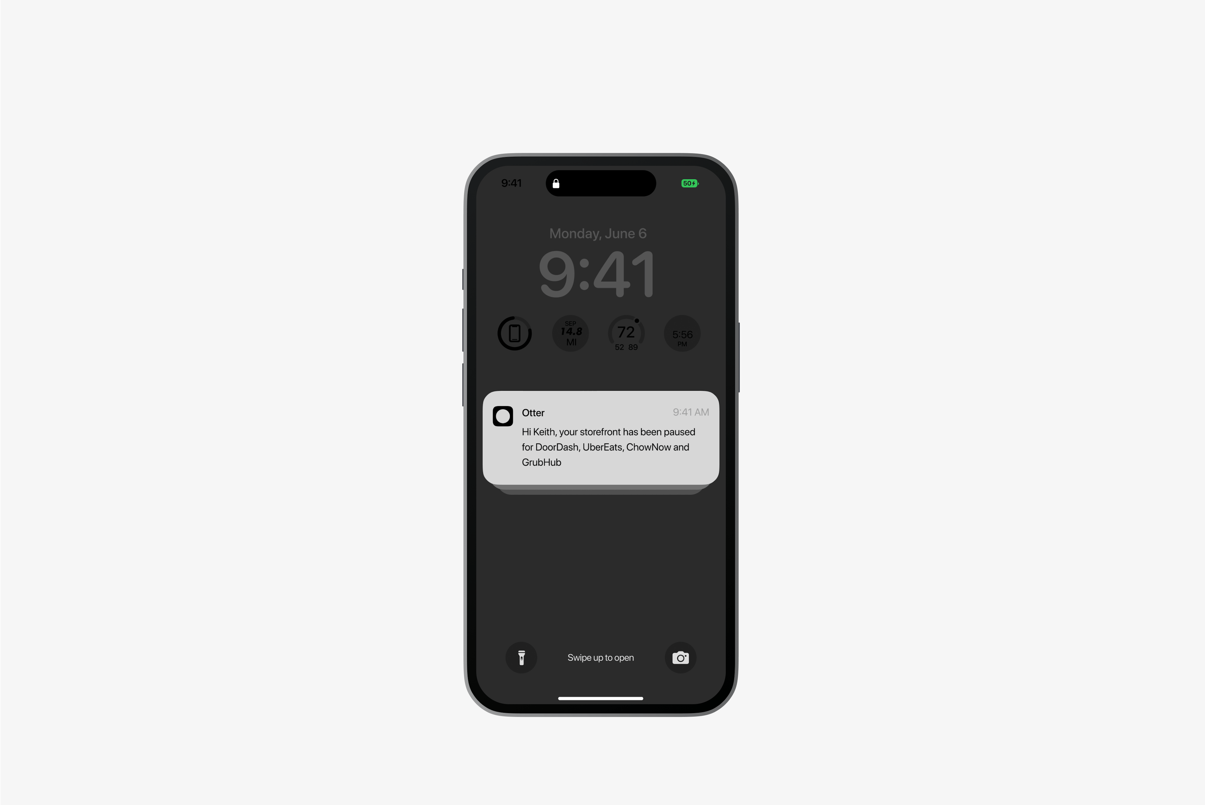 Stay up-to-date with complete visibility of your business. Get notified on store status so you can keep the orders coming and make changes when it matters most.