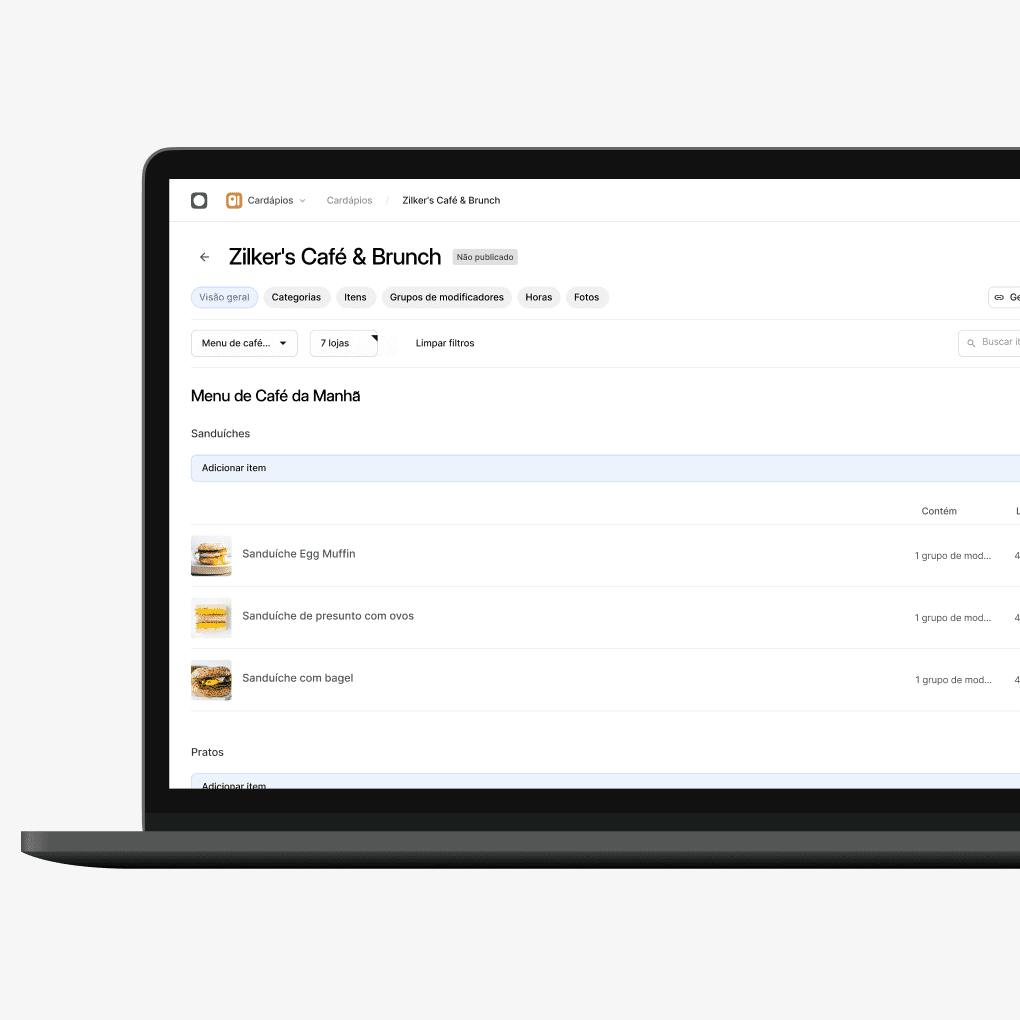 Sincronize automaticamente os seus cardápios, gerencie-os em várias lojas e marque itens como indisponíveis em tempo real.
