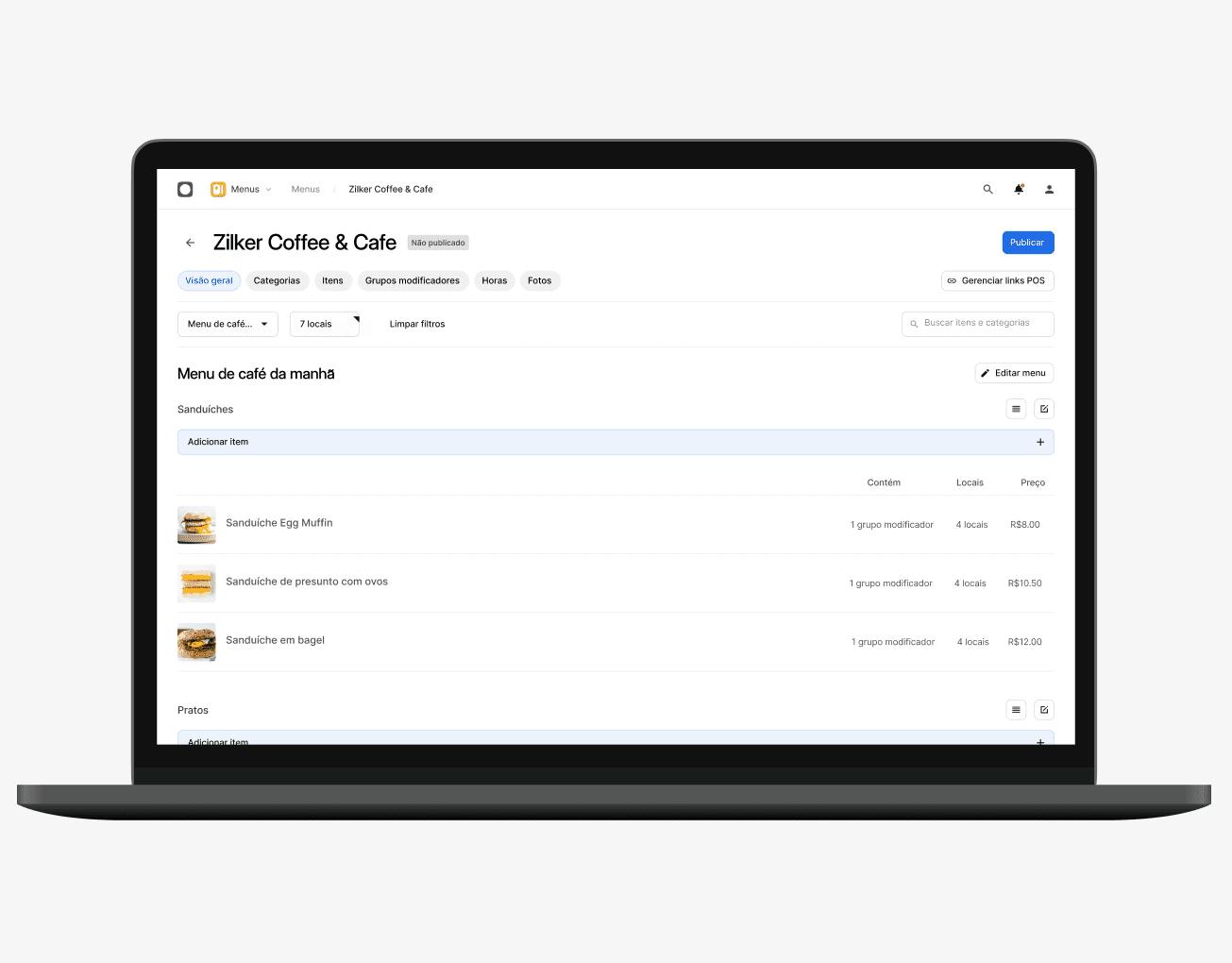 O Administrador de Cardápios te ajuda a manter a consistência e as atualizações em todos os lugares em que seu cardápio esteja publicado, mantendo tudo sincronizado.