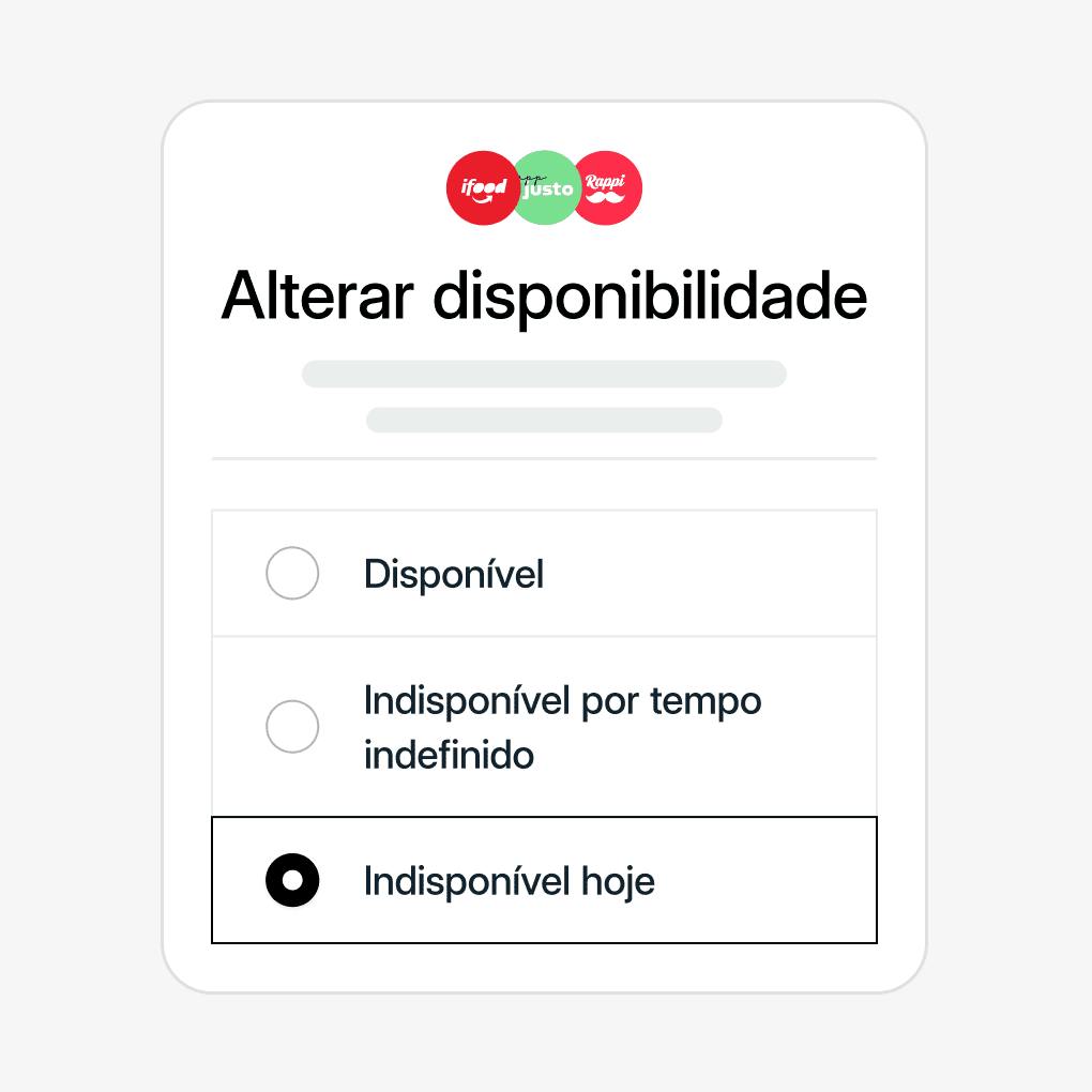 Atualize os tempos de preparo à medida que mudam ao longo do dia. Remova temporariamente os itens indisponíveis de todos os seus cardápios online. Pause instantaneamente a sua loja quando necessário.