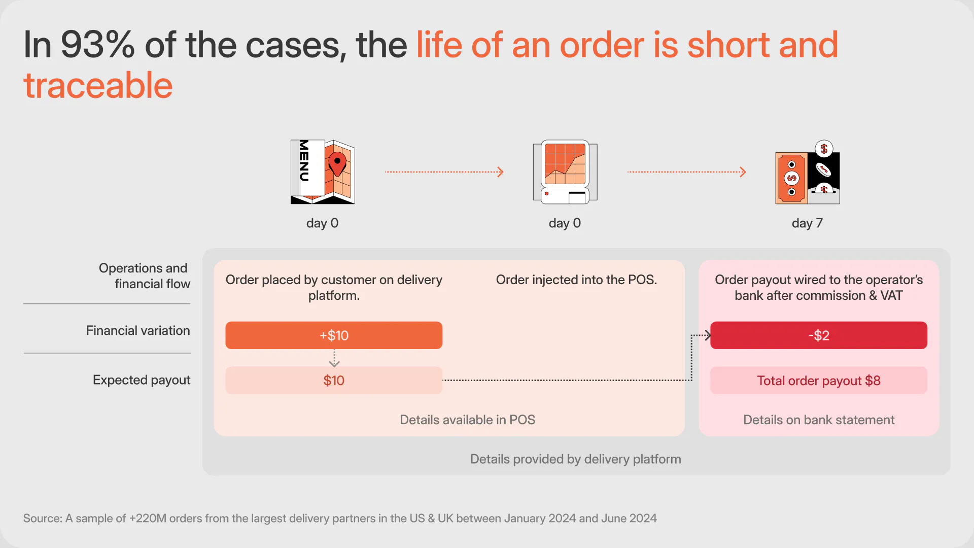 78% of restaurant owners say digital orders drive their main sales, but many also admit they struggle reconciling payouts with their POS and bank records.