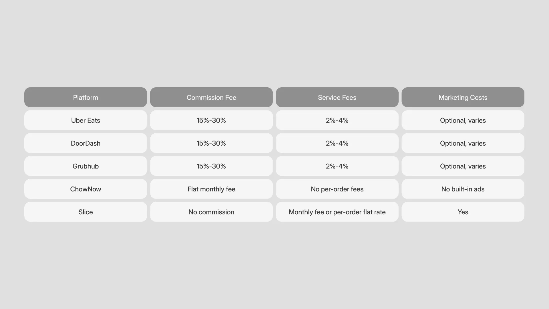 In March 2025, CloudKitchens broke down the types of commission fees and common rates per platform. These rates typically range from 15% to 30% of gross sales per order, depending on the platform and service level chosen by the restaurant.