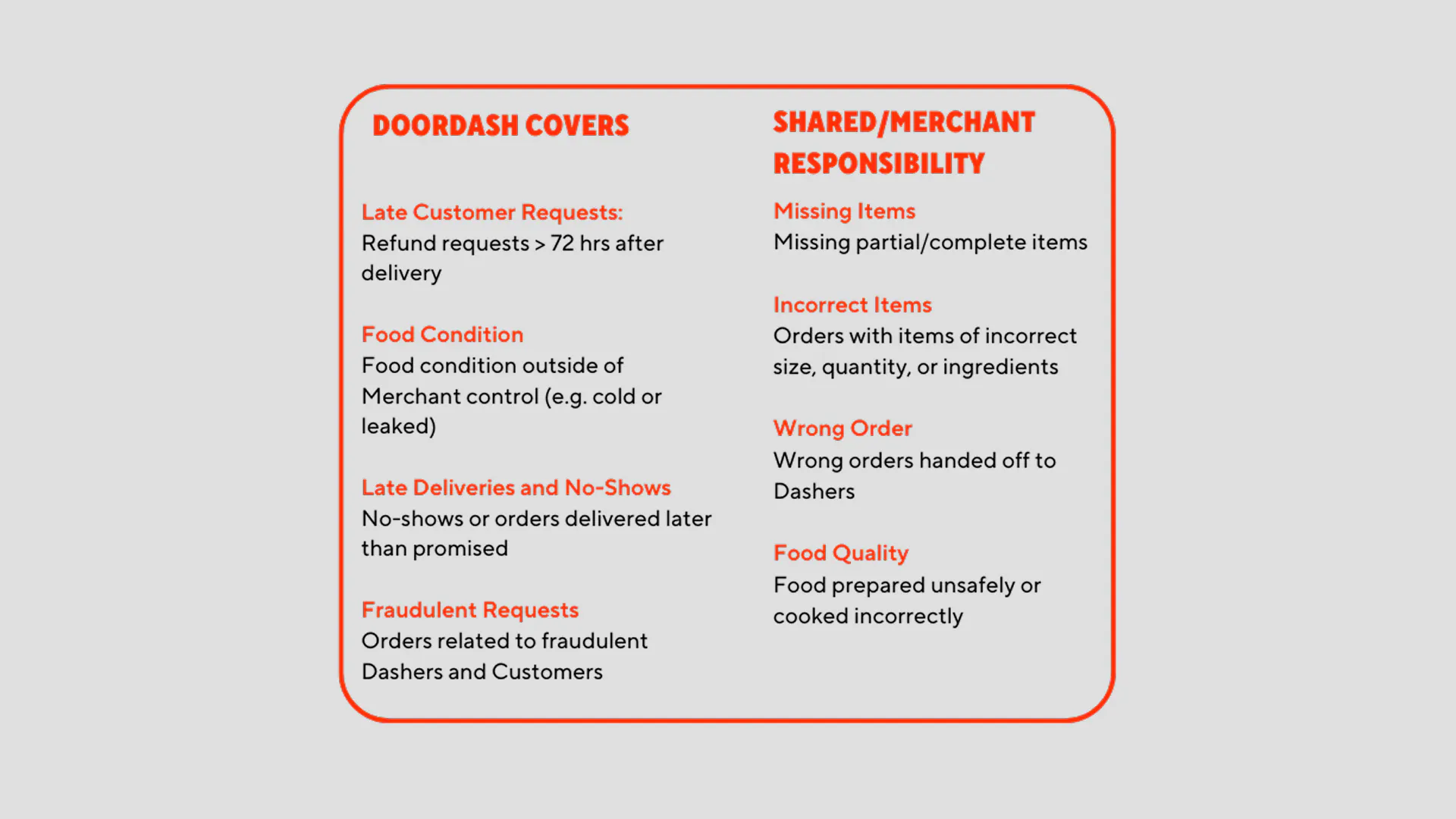 Retroactive order adjustments are one of the most significant threats to profitability. These adjustments are automatically deducted from restaurant payouts, sometimes weeks after the order date, and often reflect reported problems with an order, such as missing or incorrect items, late deliveries (even including driver wait time for order pickup), customer quality complaints, wrong order delivery, and more. These can show up as full or partial refunds, fees, deductions or chargebacks from disputes.