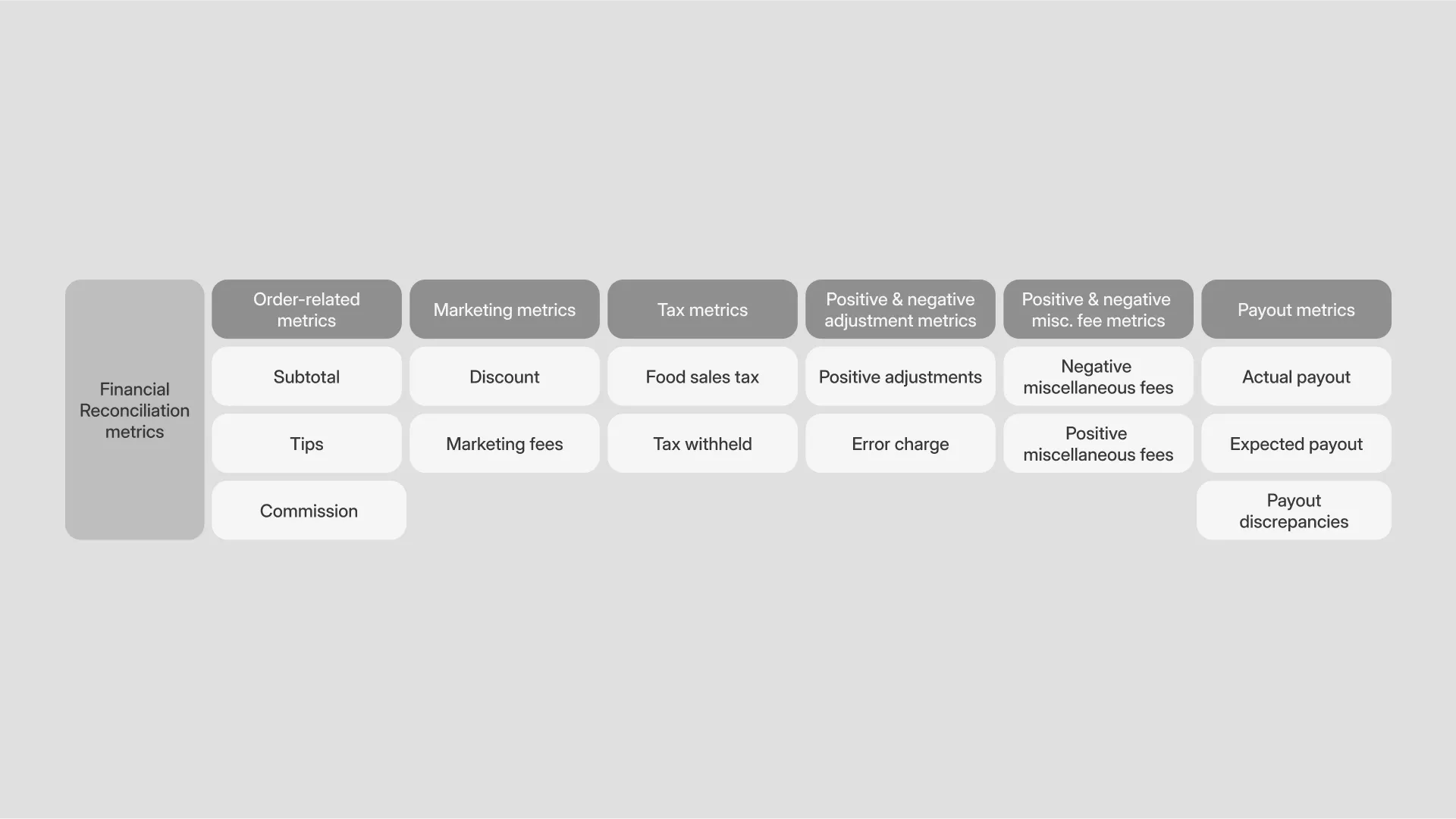 Fees, commissions, and payouts in third-party delivery marketplaces can be tough to keep track of without the proper support, and it can be particularly tricky to stay up to date on changes in fee structures. While several are constant and appear per transaction immediately (commission, taxes, product discounts), many can pop up weeks after a restaurant has already accounted for the order.