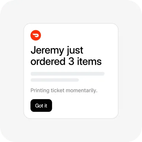 Best in class Integration with Doordash, Uber Eats, and others. Manage you orders from delivery apps and your own channel from a single screen.